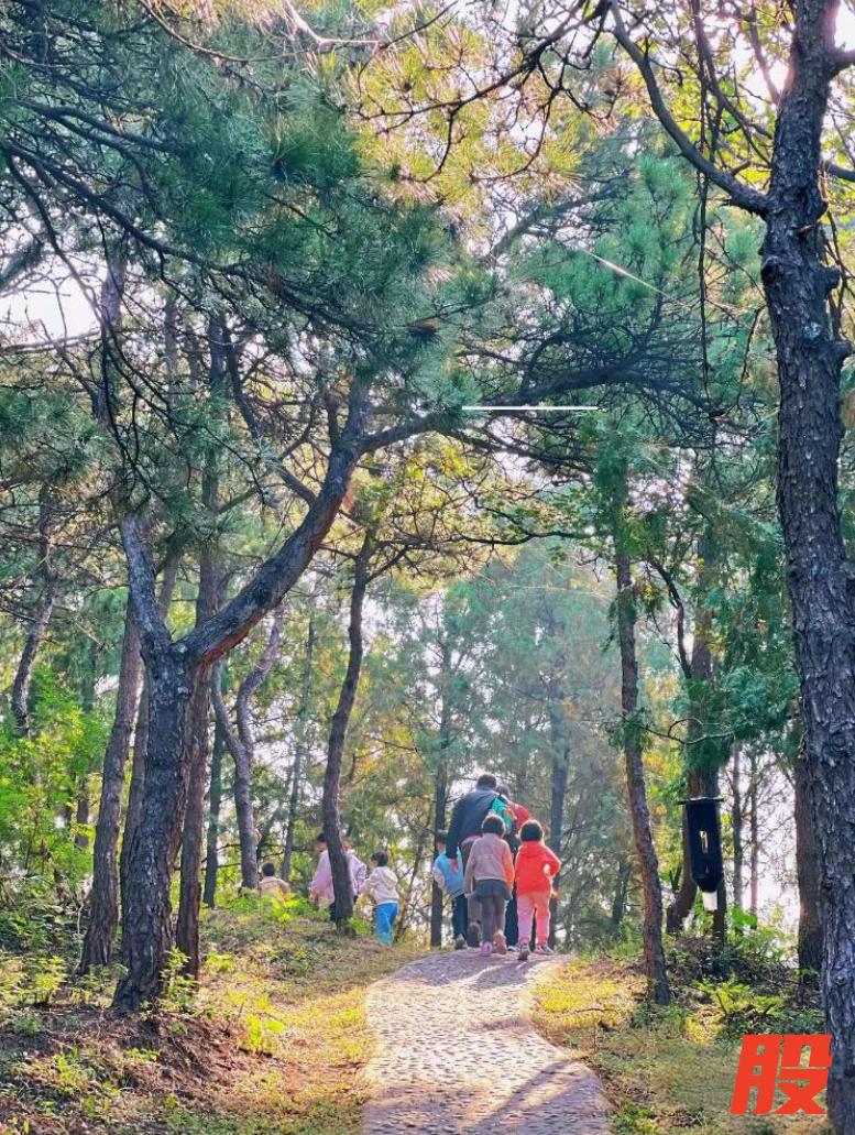 整体来说大石山森林公园的爬山难度对亲子家庭是很友好的,全程是硬化嵌石坡道,以及少量台阶,台阶还都比较低矮。带着孩子在山林里不会走得太累,而脚快的人20分钟到半小时就爬到山顶的观景台了。