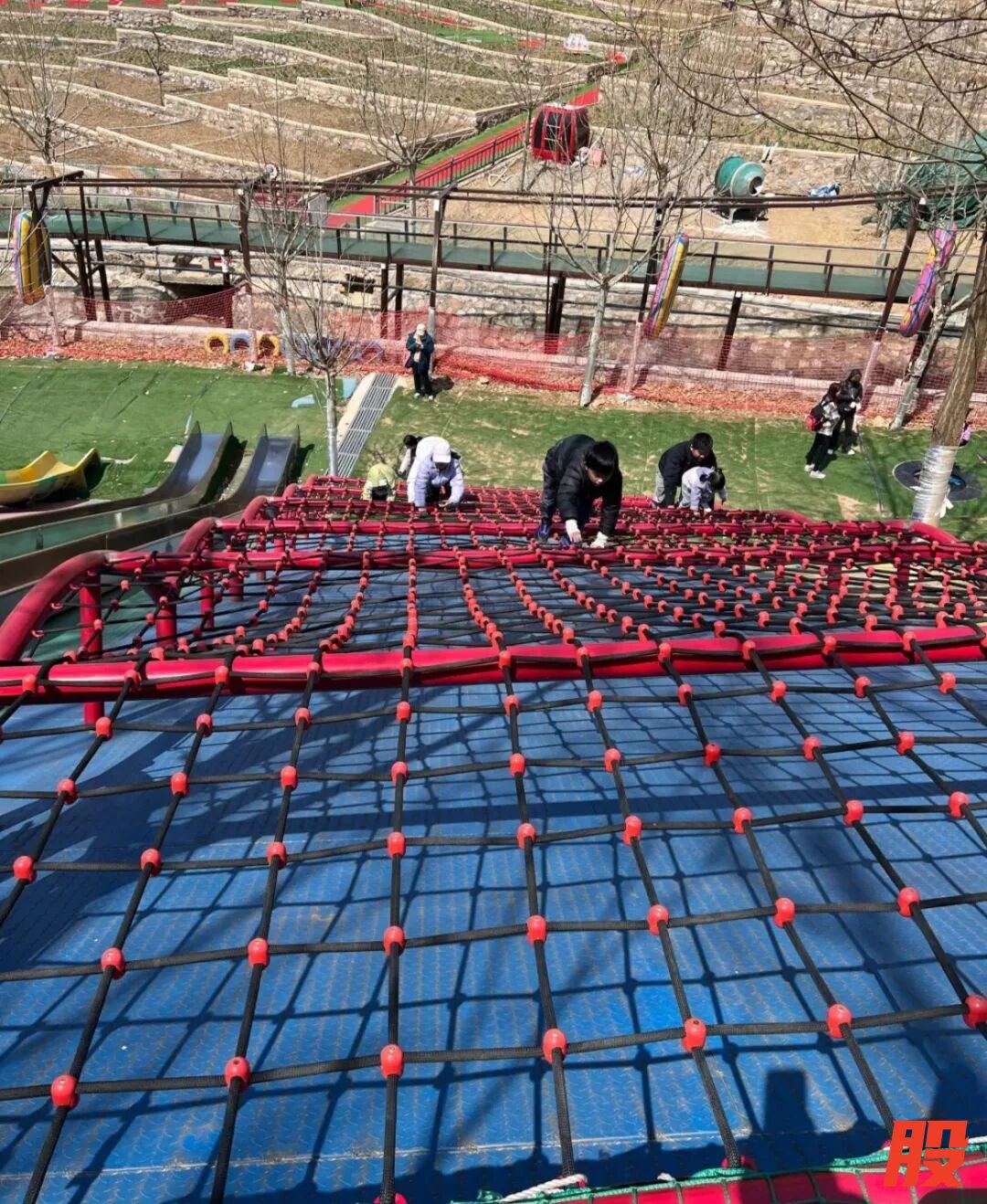小滑车出溜一下就结束了,肯定得再玩点别的,无动力儿童乐园有超长的彩虹滑梯,让孩子接着畅快滑行。还有攀爬区、网绳乐园、蹦床秋千、吊桥之类的,孩子充分放电,不限时不限次,能玩一整天。
