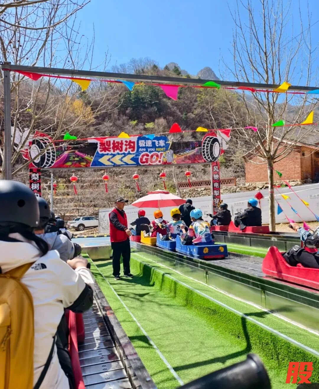 山地滑车是梨树沟必玩的“明星项目”,超长的2500米滑道,沿途有连续发卡弯和极速冲坡,那种速度与激情并存的感觉特别刺激,孩子秒变“秋名山车神”。一张票不限次数,可以尽兴玩,美中不足的是周末节假日排队的人很多。